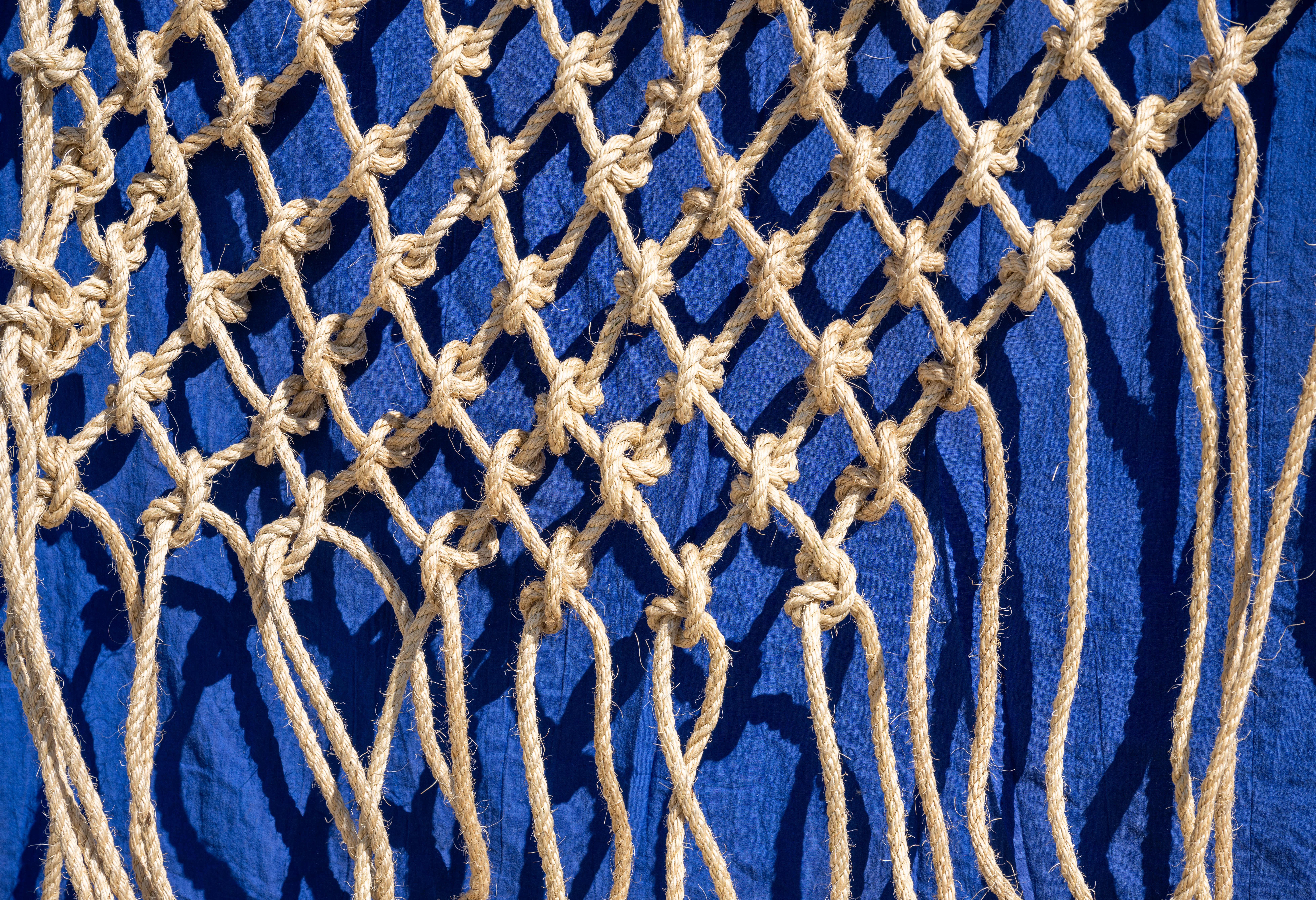 A woven fishing net by artist Nadeena Dixon.
