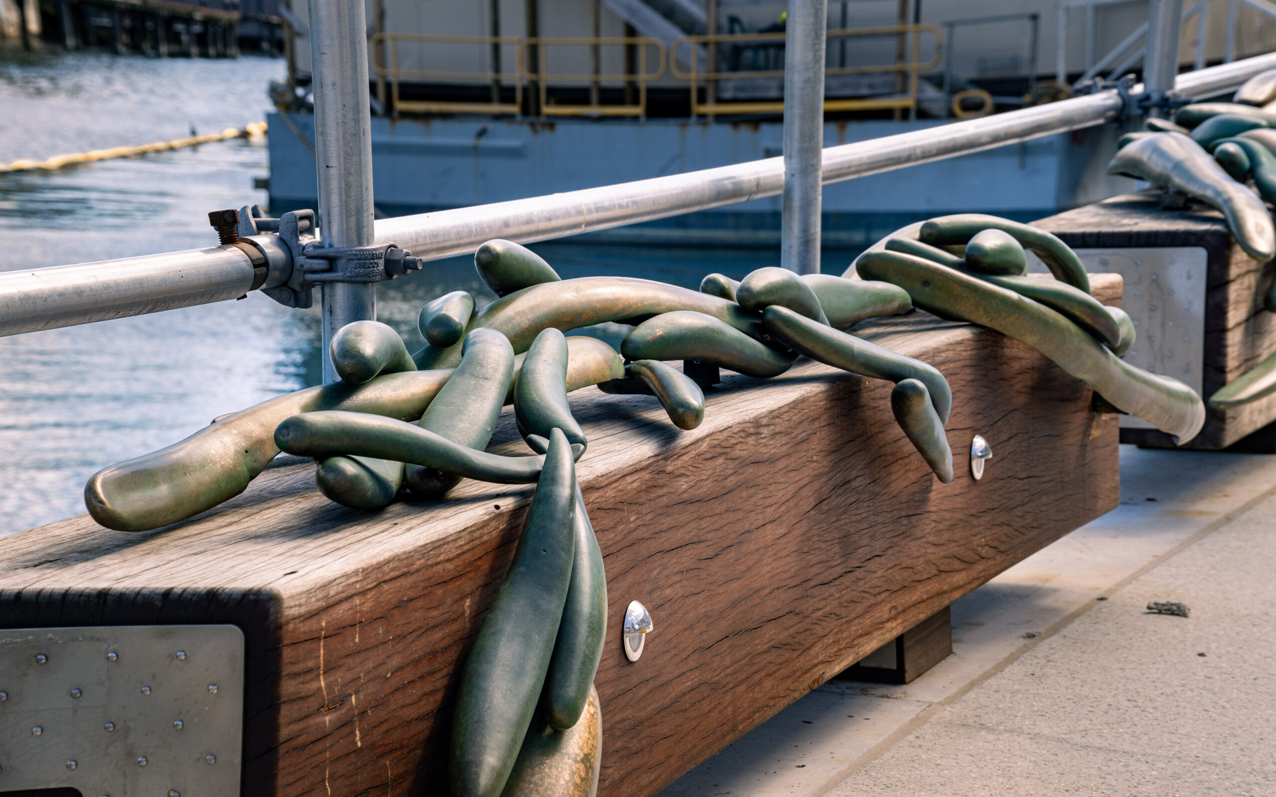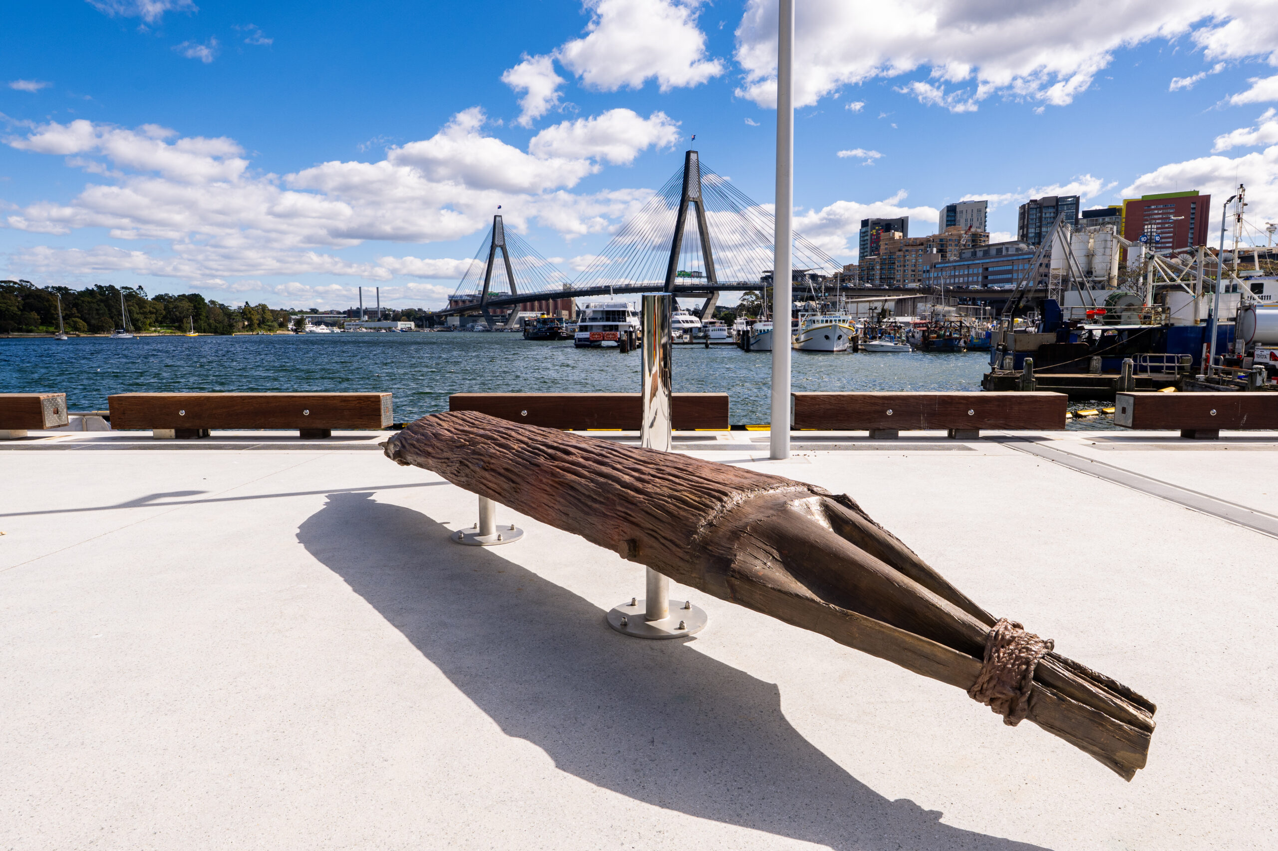 Five permanent art installations are woven throughout the public domain, celebrating the area’s rich maritime and cultural history. For thousands of years, the Gadigal and Wangal people fished, swam and gathered along these shores. The works include three bronze sculptures honouring Gadigal traditions and ancestral fishing practices.