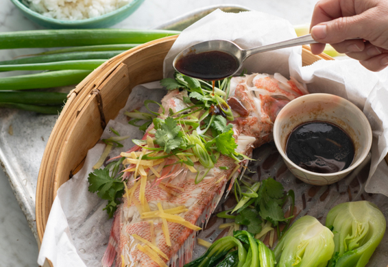 Steamed Whole Ocean Perch with Ginger & Soy