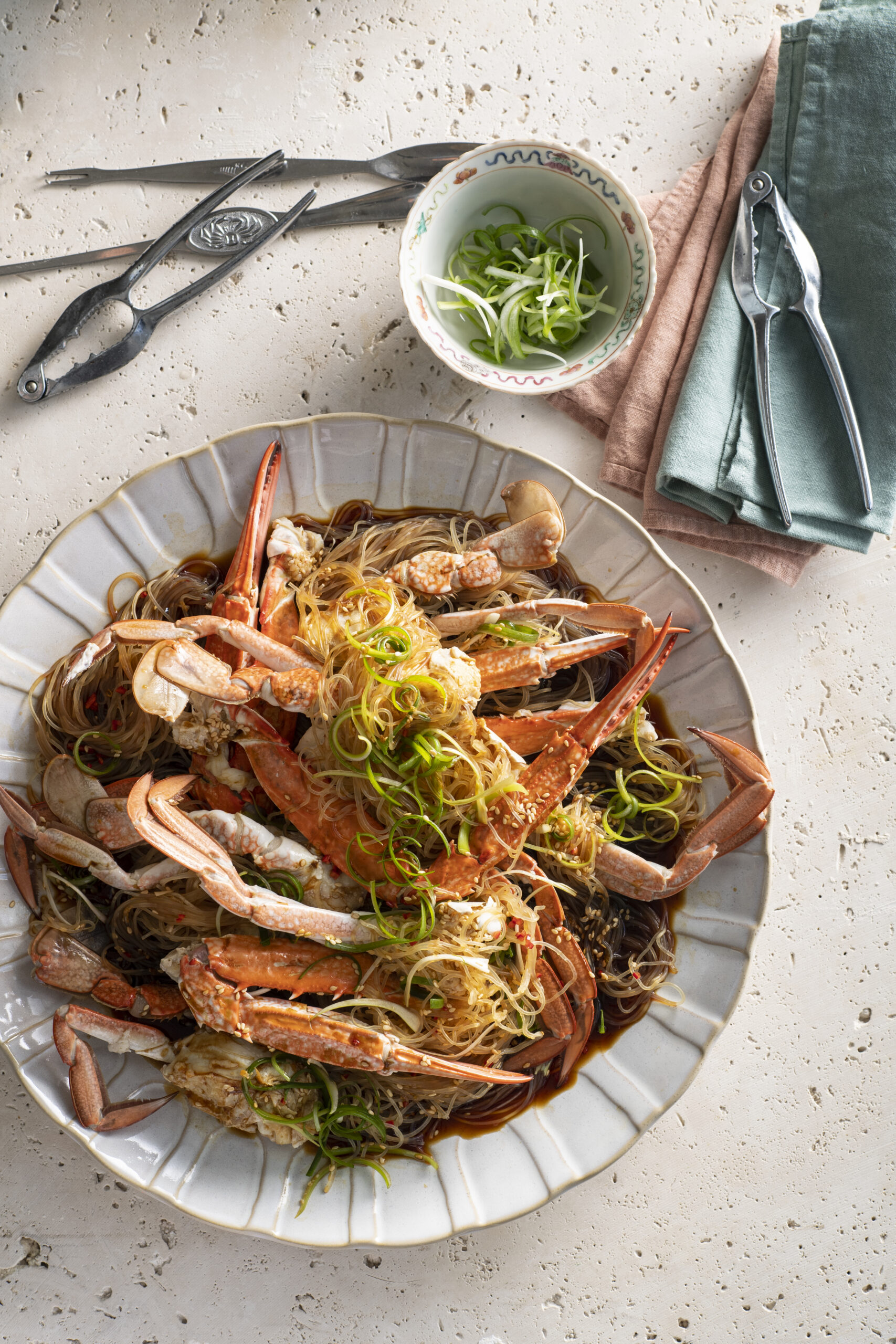 Crab is a hands-on experience, and yes, a bit messy! Crab pickers can help you extract the meat from the body and legs, but a toothpick and fork will do in a pinch. Finger bowls are a great idea when serving guests.
