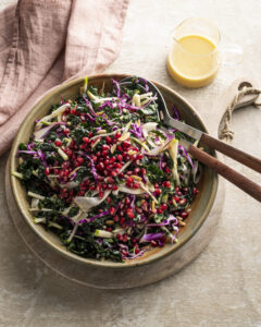 Dress your salad with seasonal fruit like pomegranates or sliced apple. Even through in a handful of toasted walnuts. These touches make your feast complete.