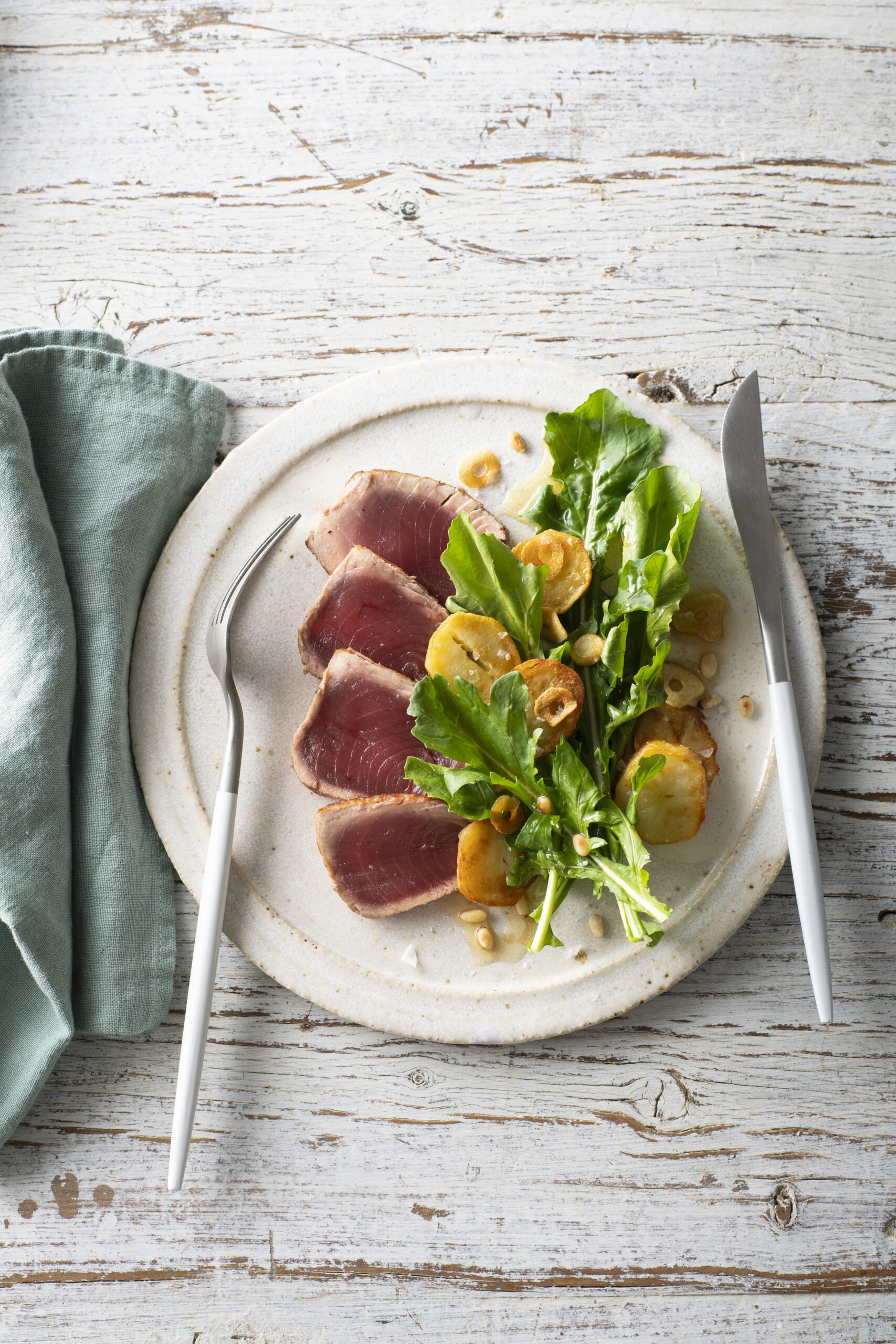 Seared Tuna with rocket and potato salad